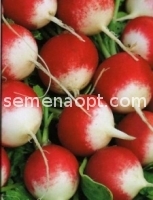 Early maturing (20 - 22 days from germination to technical ripeness) outdoor varieties . a rosette of leaves is half . root crop round-oval, red with white tip, weight 20 g . The flesh is white, tender and very tasty. For short storage roots do not lose moisture and remainsucculent . ingrown Resistant shoots flower in the first year of vegetation . Yield 2.4 kg / m 2 . sowing the soil is made in late April - May beginning at a depth of 1 cm in Scheme 5 - 7 x 15 cm . Radishes prefer light, structured, well-fertilized soil .