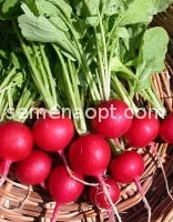 Early maturing variety . From seedling to the technical maturity of 20 - 30 days . Suitable for cultivation in the open and in greenhouses . root crop rounded, with red crimson hue, length of 3 - 5 cm, diameter 2.8 - 3.2 cm, weight 15 - 20 g . The head of root crop small, flat . The flesh is white orwhite and pink, juicy . Taste qualities are excellent . Commodity high . Yield 3.0 - 3.5 kg / m 2 .