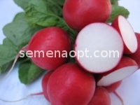 Early maturing (20 - 25 days from germination to harvest) very productive hybrid for open ground . A rosette of leaves is half . Root crop round, red , convex head, weighing 30 - 35 g . The flesh is white, tender, juicy, long lost crunchy . TasteQuality good. Grade resistant to ingrowth floral shoot vegetative in the first year . Yield 4.3 - 4.5 kg / m? . sowing the soil is made in late April - May beginning at a depth of 1 cm in Scheme 5 - 7 x 15 cm . Radishes prefer light, structured, well-fertilized soils