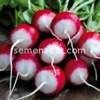 Early variety radish, intended for cultivation in greenhouses and outdoors in spring and autumn . root crop is red with a white tip, rounded . The flesh is white, juicy . Has excellent taste . Distinguished friendly formation of roots,resistant to decay and ingrowth of flower shoots in the first year of vegetation .