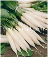 Middle-Grade . from full germination to technical maturity of 35 - 40 days . root crop white, icicle-shaped prominent, diameter 2 - 2.5 cm . The length of root 6 - 8 cm . The head is small, convex . The surface of the root smooth . The flesh is white, tender,juicy . Suitable for sowing in the open field and greenhouse .
