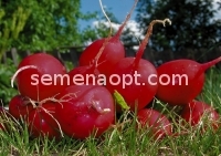 Vegetative period of 22 - 28 days . Root of red-crimson, length 3.5 - 4.1 cm, diameter of 3.4 - 4.0 cm . Smooth surface . The flesh is pink-white, dense, juicy, sweet and tangy taste, resistant to rapid fading . Root almost completely submerged in the soil . high root yield, taste good .