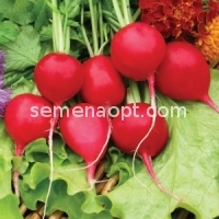 One of the early ripening varieties, Matures 19 - 21 days . root crop smooth, round or rounded-oval, red-crimson color, weight 25 - 35 g . The flesh is white and white-pink, juicy, firm, strictly taste . Gradehas excellent taste, high marketability of roots