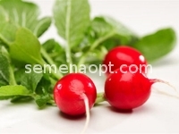 . a rosette of leaves is half a height of 20 - 24 cm, number of leaves 6 - 7 . Sheet lyre-shaped, green , mid-pubescent,divided into 2 - 3 lateral lobes, petioles green, short, hairy . Root of red-crimson, round, 3 cm in diameter, smooth, flat head, medium . Root crop is almost completely submerged in the soil . Pulling good . The flesh is white, firm, juicy, weight 12 - 28 g .