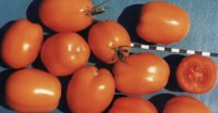 Gradeis middle: the length of time from the mass of shoots prior to the beginning of maturation in growing seedling method 115 - 120 days . Plant determinant . Leaves are light green, medium-corrugated . The inflorescence is simple, compact, stem without joint . The first inflorescence is pawned on 6 - 7th sheet next - after 1 - 2 pages . Fruitoblong-oval (subscript 1.1 - 1, 2), smooth, orange, medium-neosemenennye with good keeping quality and transportability. fetal weight by an average of 72 g, the number of slots - 2 . Taste good quality . When grown under reflux fruit solids comprise 6, 2 - 6, 4%, sugar 3 3 - 4 6% carotene 2.80 - 3.90 mg%, pH - 0.34 - 0.40% . Yields 41.1 - 62.1t / ha . relatively resistant to Alternaria . It is intended for industrial processing, high-quality canned food with high content of p-carotene (whole-fetal canned, juice), as well as for fresh consumption .