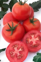 For cultivation in the open ground in the personal time farm . Salad . Early maturing hybrid . Plant determinant . The leaves are medium sized, green . The inflorescence is simple . Peduncle with articulation . Fruit flat round, ribbed, thick . Coloring immature green fruit without spot at the base of the mature - red . The number of slots 4 - 6 . Fruit weight 135 g . Taste great . Productivity of commodity fruits 5 - 7 kg / sq. M . Resistant to Verticillium, Fusarium wilt .