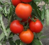 Ultraranny from germination to the mass fruiting 76 - 80 days . The plant is determinant, a height of 50 - 70 cm . The inflorescence is simple with 6 - 8 fruits . The first cluster is laid over the 5 - 6th leaf, follow -through sheet or sheet without division . Fruits are round, smooth, very durable, without green-yellow spot at the stem . In the technical phase of maturity fruits are light green, and when ripe - intensely red . The average weight of marketable fruit 110 - 115 g . Yields in the open field of 90 - 100 t / ha, and in the spring of film greenhouses - 14 - 17 kg / sq m . M . Hybrid resistant to TMV, Fusarium wilt,Solanaceae virus (Lycopersicum virus-5), late blight . The value of a hybrid: earliness, high simultaneity fruiting, fruit uniformity of shape and weight in the range of brush and scrub, excellent storage ability of ripe fruit, good transportability, complex disease resistance, good taste . It is recommended for growingin the open ground and film greenhouses to produce high-quality early tomato fruit for fresh consumption . plant density-3.5 - 4 pcs. / q . m .