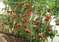 Ultra-fast: from full germination to start fruiting 85 -100 days . Plant undersized, stam, determinant, height 50 cm . Features farming: for growing in small containers on balconies and in the open field . Does not require the removal of superfluous shoots and garters . Fruit small, weighing 10 to 60 g, rounded, smooth orslightly ribbed . Painting mature fruit intense red . good taste . resistant to late blight and adverse weather conditions . Use: salad and salt-coating purposes . Variety is virtually Trunk cleaner, which significantly reduces labor costs for care . Resistance to temperature changesallows to grow this variety at an earlier date under the film, when there are abrupt drop in temperature . The fruits of good taste, so it is very popular with the children of them can cook delicious spring salads . Yields - 1.8 - 2.0 kg per plant .
