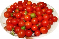 Tall plants, fruit brushes in the brush 15 - 20 fruits in hand . Features farming: llya film andglazed greenhouses . Recommended planting density 3 plants per 1 sq. m . Terms of maturation: early maturing, from germination to maturity takes about 95 days . The fruits are round, bright red, shiny, very aligned, weighing 20 - 25 g . It has a complex disease resistance . For cold-resistant . Use: for consumptionfresh . Grade with original, like grapes, brushes . It is possible to use it for planting as an ornamental plant. The fruits of medium-sized, do not crack, picklable in small volume containers . Complex disease resistance, cold resistance plant will provide a crop of tomatoes, even inadverse summer .