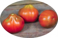 A completely new type of tomato has a higher (2 - 3 times higher than that of conventional tomato) lycopene . From the point of view of medicine, these tomatoes are more medicine than vegetables . indeterminate tomato hybrid later dateripening . Type of vegetative . Plants of this hybrid features a powerful growth . Even in extreme temperature conditions, they always remain highly leafy and stunted . The first inflorescence is pawned on the 10 - 11 sheets, follow through 3 sheets . The inflorescence is simple, long, from 6 - 8 fruits, without a crease . Averagefruit weight 120 - 140 g . The fruits are smooth, smooth, strong, rounded, with a green spot at the stem . When ripe - intense red color . A distinctive feature of the hybrid is a very dark green color of immature fruit, which in ripening becomes dark red . hybrid resistant to tobacco mosaic virus,brown (olive) spot, fusarium, nematodes and viruses tomato yellow leaf curl .