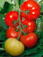 The mid . Ripening occurs in the 120thday after the full emergence . Plant indeterminate . The leaves are medium sized, dark green . The inflorescence is simple . The first inflorescence is pawned on 9 sheets, follow - through 3 sheets and more . Fruit flat round shape, slightly -rebristy, the color of unripe fruit light green, mature - red . Number of Slots 4 or more . fruit weight 180 - 200 g . Excellent flavor quality of fruits. Productivity of fruits - 12.5 kg / sq. M . Grade Caliber tomato resistant to tobacco mosaic virus, brown (olive) spot, fusarium . The value of this hybrid tomatoes - high yield and good taste of fruits .