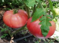 For cultivation in the open field and under the film shelters in LPH . Requires garters and forming plants. Salad . Early maturing . PlantIndeterminate . The leaves are large, dark green . inflorescence intermediate . peduncle with articulation . Fruit flat round, ribbed, medium density . Coloring immature green fruit with dark green spot at the stem, mature - raspberry . The number of slots is 4 or more. 250 fetal weight - 300 g . good taste . Yield commodity fruits under filmshelters 9.5 kg / sq.m. m .