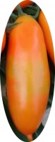 The mid (107 - 110 days from germination to fruiting) tall (190 - 200 cm) grade . Designed forgrowing under the temporary film shelters and outdoors . Fruits are very attractive, bright orange, oblong - elliptical shape, length 8 - 10 cm, weight 90 g . Taste excellent . Due to the dense skin and flesh have good keeping quality . The fruits are ideal for solid membranes canning, freezing and cooking freshsalads . Trading yield 3.8 - 4.3 kg / stretch .