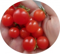 Ripening (80 - 87 days from germination to fruiting) outdoor varieties . Plant stam determinant, height 25 - 30 cm . The first inflorescence is pawned on 6 - 7 sheets, follow - through 1 - 2 pages . The fruits of many, red, round, smooth, average fruit weight 25 g . The fruits are delicious,very sweet, with a high solids content - 8 - 10% . In central Russia planting seedlings in early April . pick in the phase of the first true leaf . transplanting into the ground in May at the age of 30 - 35 days . The scheme of planting 30 x 40 cm . grown without Forming Yield 0.15 - 0.2 kg / stretch . not affected due to the high Phytophthoraripening . possible seeding directly into the ground . Value varieties: decorative, suitable for growing in pots, patios, balconies in containers, borders and as kultury- "seal" between the tall tomatoes in greenhouses . Recommended for direct consumption, decoration of dishes, cannedAssorted canning .