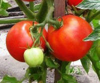 Very early variety: fruit ripening begins 82 - 88 days after theshoots . Plant determinant, mid-leafy . sheets of plain, green, medium-sized, medium-corrugated . The inflorescence is simple, compact with 5 - 6 fruits . The first inflorescence is pawned on 5 - 6th leaf . The fruit is round, slightly ribbed . Coloring unripe fruits greenish-whitish, mature - red with no green spot at thepeduncle . Weight 70 - 85 g . In the fruit 2 - 3 nests, their correct location . fruits contain 4.6 - 5.4% of dry matter, 2.6 - 3.7% sugar, 14, 5 - 16.2 mg% ascorbic acid . Acidity - 0.5 - 0.6% . Taste qualities are good. In seedling culture productivity by 20 July is on average 12 t / ha, the total yield - 30 - 40 t / ha . During harvest stretched . Intended for consumption of fresh fruits and for canning at home . Recommended for early production of tomatoes in open field .