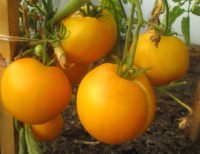 For cultivation in the open ground and under the film shelters in LPH . Requires garters and forming plants. Salad . Early maturing . Plant indeterminate . Sheet middlesize, green . The inflorescence is simple . peduncle with articulation . Fruit heart-shaped, medium-ribbed, loose . Coloring immature green fruit with dark green spot at the base of the mature - yellow . The number of nests of more than 6 . fruit weight 200 g . taste good . The yield of fruits is 2 kg / sq m . m .