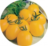 Ripening (87- 95 days) grade for the protected ground . Plant floor determinant, height of 1.2 - 1.4 m . Requires Trunk cleaner and suspenders . Fruits aligned, rounded-plum, yellow, weighing 20 - 25 g, dense, with a high content of carotene, long kept after removal . Value varieties: abundant fruiting, high taste and technologicalquality . Recommended for fresh consumption, tableware, cooking canned assorted red tomatoes . Yield grade is 8.1 kg / m² .