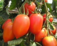 Early maturing . Ripening occurs at 97 - 98 days after the full emergence . The plant does not stam, determinant, semi-spreading, slightly branched and weakly foliated, a height of 55 - 60 cm . Sheet ordinary, medium-sized yellow-green, slightly corrugated, with stipules . The inflorescence is simple . The first inflorescence is pawned on7listom, the next - after 1 - 2 pages . Peduncle with articulation . The fruit is medium in size, smooth, oblong-oval . Coloring unripe fruits are light green, mature - red-orange . Number of Slots 2 . fruit weight 82 - 86 g . fresh fruit taste good quality. dry matter content in the juice 5.9 - 6.7%, total sugar 3.9 - 4.5% of ascorbic acid19.6 - 21.2 mg per 100 g of crude material, the acidity of 0.35 - 0.39% . The yield of fruits is 345 - 439 kg / ha . The output of marketable products 94 - 97% . Resistant to drought . Value varieties: earliness, high flavor quality of fresh and canned products, are relatively resistant to drought .