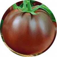 The mid (maturation occurs at 112 days after full shoots) tall (indeterminate) variety for cultivation under film shelters . Fruits flat round, slightly ribbed, brown color, with a dense skin, weight 110 g . sweet flesh has a rich taste and strong aroma. The variety is resistant to leaf (olive) spot and TMV (Tobacco mosaic virus) . Trading yield of 10 kg / m 2 . In the dark fetal tomatoesmore dry matter, vitamins and antioxidants than traditional red . Also, anthocyanins, which give the dark color fruits protect against cancer, cardiovascular disease, prolong youth . Just such tomatoes have aphrodisiac properties. Sowing on seedlings - in late March - early April . A pick - in the first phase of thissheet . transplanting - in the early to mid-May at the age of 45 - 50 days . After planting plants form a single stem, removing all the "stepchild" . Scheme planting: 40 x 60 cm .